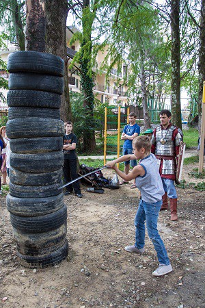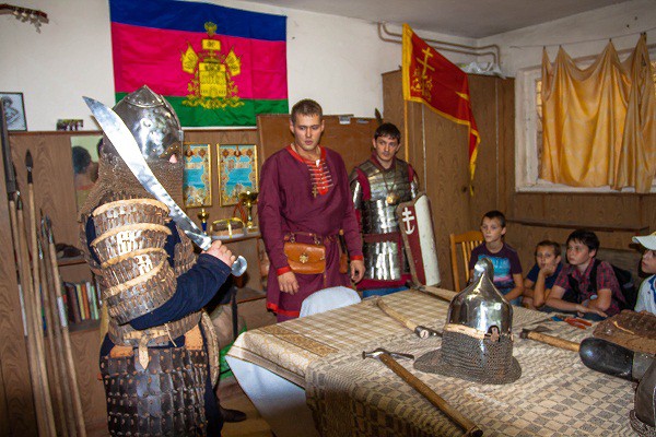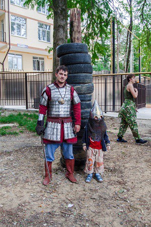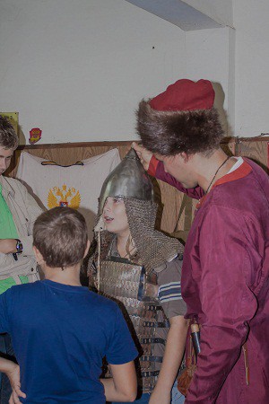 После наглядного урока, все желающие могли примерить доспехи русского воинства и подержать в руках оружие.