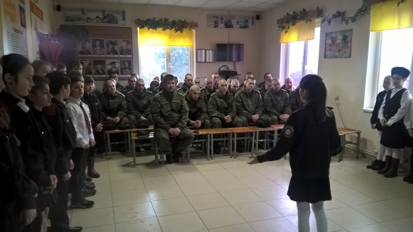 В преддверии Дня Защитника Отечества 21 февраля 2017 г. казачата СООШ №81 посетили ракетную военную часть, дислоцирующуюся в окрестностях Сочи. Они привезли солдатам подарки собранные учащимися школы, спели несколько песен. Военнослужащие рассказали о своей службе, школьники с удовольствием примерили каску, бронежилеты. Общение было приятным и гостям и хозяевам.
