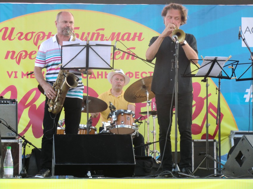Жизнерадостный ударник и сам солист, в поклоне благодарности за теплый прием.На этом, собственно, и все — мне пришлось покинуть действо, увы.