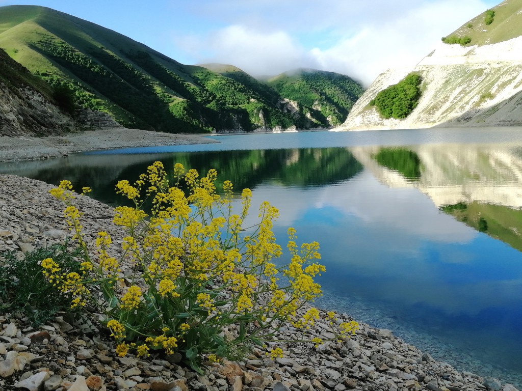 Озеро Казеной-Ам в Чечне и модельная корова, позирующая по всем правилам современной красоты — задницу вперед.