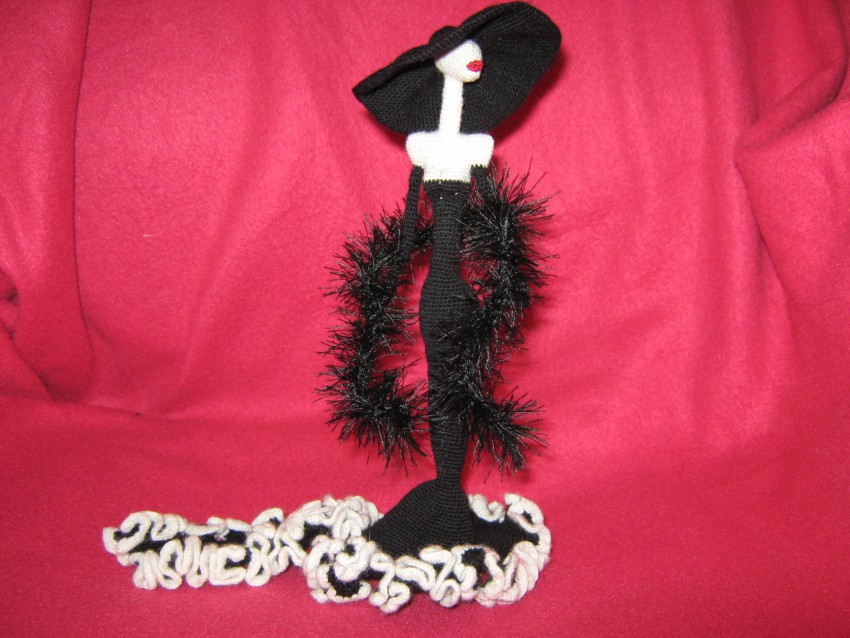 Всем огромное СПАСИБО за высокие оценки моего скромного труда! ( ой, я такая скромница) На самом деле, довольно-таки сложная игруха, в том плане, что вяжется вся эта красота тонкими нитками и крючком 0,75 или 0,9. Высота кукол 20-21 см. Чёрными нитками особенно сложно вязать. А там, где шлейф у чёрного платья, провязывается 2268 петель!