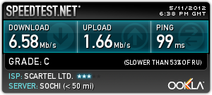 На работе более интересная картина. Раньше WiMax практически не работал, сигнал слабый был, а сейчас ЛТИ на скачивание 2-3 МБита/с, а на закачку 8-10!!! МБит/с.