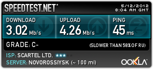 Решил завести первую тему и сразу о новом, у всех ли успешно работает? У меня ничего не поменялось, стало даже хуже WiMax, провел тест скорости: