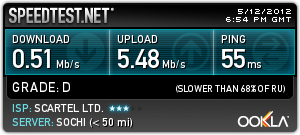 Торренты качают очень хило, нормально работают файлообменники, одно хорошо — работает HD TV Но вот вчера работало лучше, сегодня — с тормозами. Работает Youtube, отдельное спасибо всем :)
