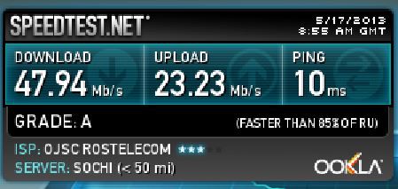 днем до 50 Мбит/с ночью до 100 Мбит/с плачу Всего: 690 руб!!!