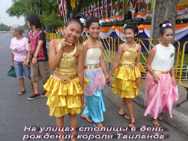 Утром в Бангкоке купили авиабилеты в Янгон (столицу Бирмы). Заплатили 255 $ на человека туда и обратно. Узнали, что в Таиланде два дня выходных. Общенародный праздник — день рождения короля. Он очень почитается местными жителями. По этому поводу вход во все храмы был бесплатным в течение всей недели. Мы этим воспользовались и посетили самый известный храм Бангкока – храм Изумрудного Будды. Там провели более 3-х часов. В памяти осталось яркое впечатление. По всему городу развешены портреты короля, а на реке в вечернее время состоялся парад корабликов и лодочек с необыкновенной иллюминацией. По чёрному небу летают зажжённые фонарики, как яркие зажжённые звёзды, а по всему городу многоцветные фейерверки. Тысячи людей на берегу реки в руках держат горящие свечи и поют песни, прославляющие короля…