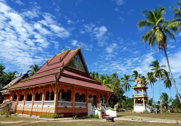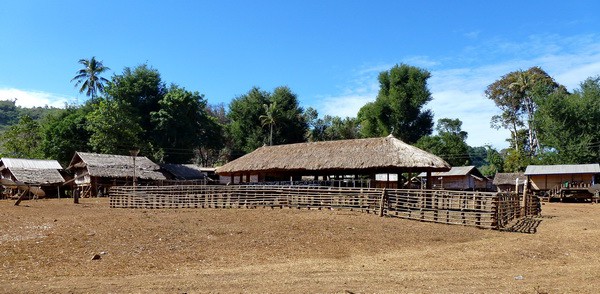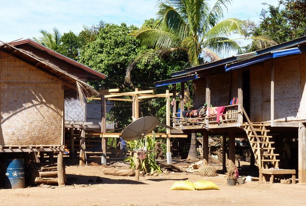 На юге темнеет рано (в 18:00) и очень быстро. Сидеть в отеле не было желания и, мы пошли гулять по посёлку. Где-то играла музыка. Решили пойти на её звук. Подошли к ярко освещённому двору, где весело играли музыканты и пел дуэт. Во дворе стояли накрытые столы и было много людей. Нас пригласили на праздник. Мы не отказались и приняли участие в вечеринке. Что за праздник, так и не поняли, т.к. на английском здесь никто не говорил. Это не было помехой для весёлого общения. Нас угощали фруктами и шампанским. Мы долго танцевали вместе с лаосцами.