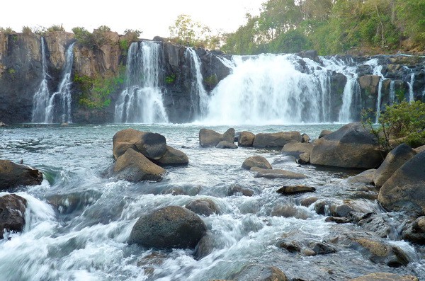 На следующее утро за нами заехал рейсовый автобус. В автобусе ехали только лаосцы с детьми, корзинами и мешками. На пароме автобус с людьми переправился на материк. Наш путь теперь лежал строго на север. Ехали около двух часов до Северного автовокзала города Паксе. Там пересели на другой рейсовый автобус и поехали до Тад Ло. Снова ехали два часа. На остановках к автобусу подносили варённую кукурузу и домашнее печенье хворост (раньше его часто жарили у нас дома). Я не удержалась и купила большой кулёк хвороста. Под хруст печения дорога стала веселее. За окном мелькали плантации бананов и кофе. Мы ехали на плато Баловен, знаменитое выращиваемым здесь вкуснейшим кофе. Кофе оказалось не хиленькими кустиками, а весьма большими деревьями с толстыми стволами (на старых плантациях).