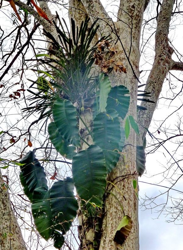 На дерево взобрался филодендрон и пригнездилась орхидея.