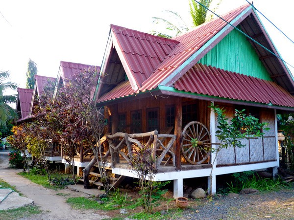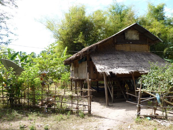 Два часа поездки промелькнули незаметно. Выгрузились в местечке Тад Ло. Тут был рынок и кафе. В кафе пообедали, купили на рынке фруктов и пошли 2 км пешком с рюкзаками к отелям и бунгало. Отели на протяжении всей поездки выбирали в пределах 10$ с человека.