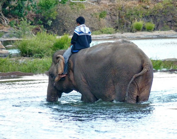 В это время женщина развела огонь и приготовила вкусную рыбу с чесноком и рисом. Во время нашей трапизы приехал верхом на слоне хозяин.