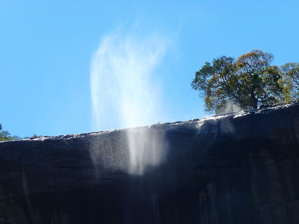 Над скалой брызги воды образовали фигурку парящего ангела.