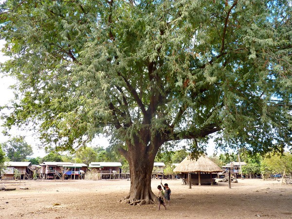 Тропа привела нас в деревню. В центре росло огромное дерево с очень вкусными плодами (тамаринд).