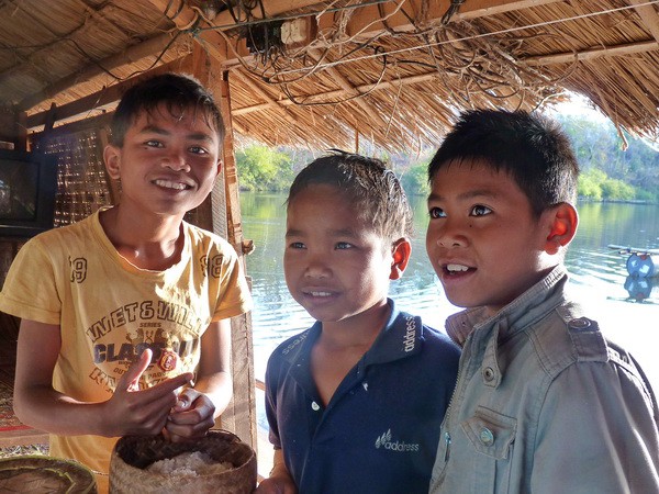 На берегу стоял домик, хозяева которого выращивали в озере рыбу для продажи. На международном языке жестов мы попросили хозяйку накормить нас. Её дети быстро поняли что нам надо и пошли на рыбалку.