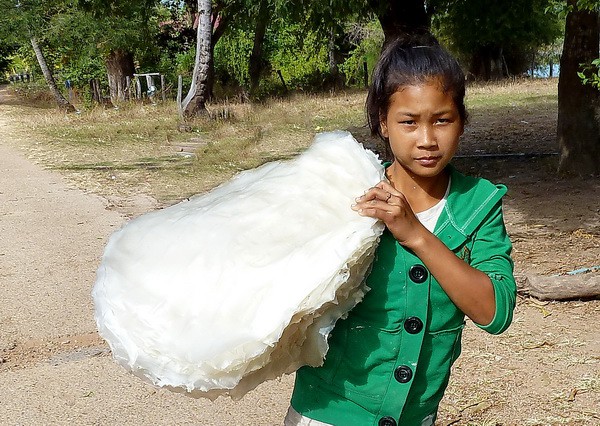 Возращались в гостиницу по дороге. Встретили девочку, которая несла рисовые лепёшки.