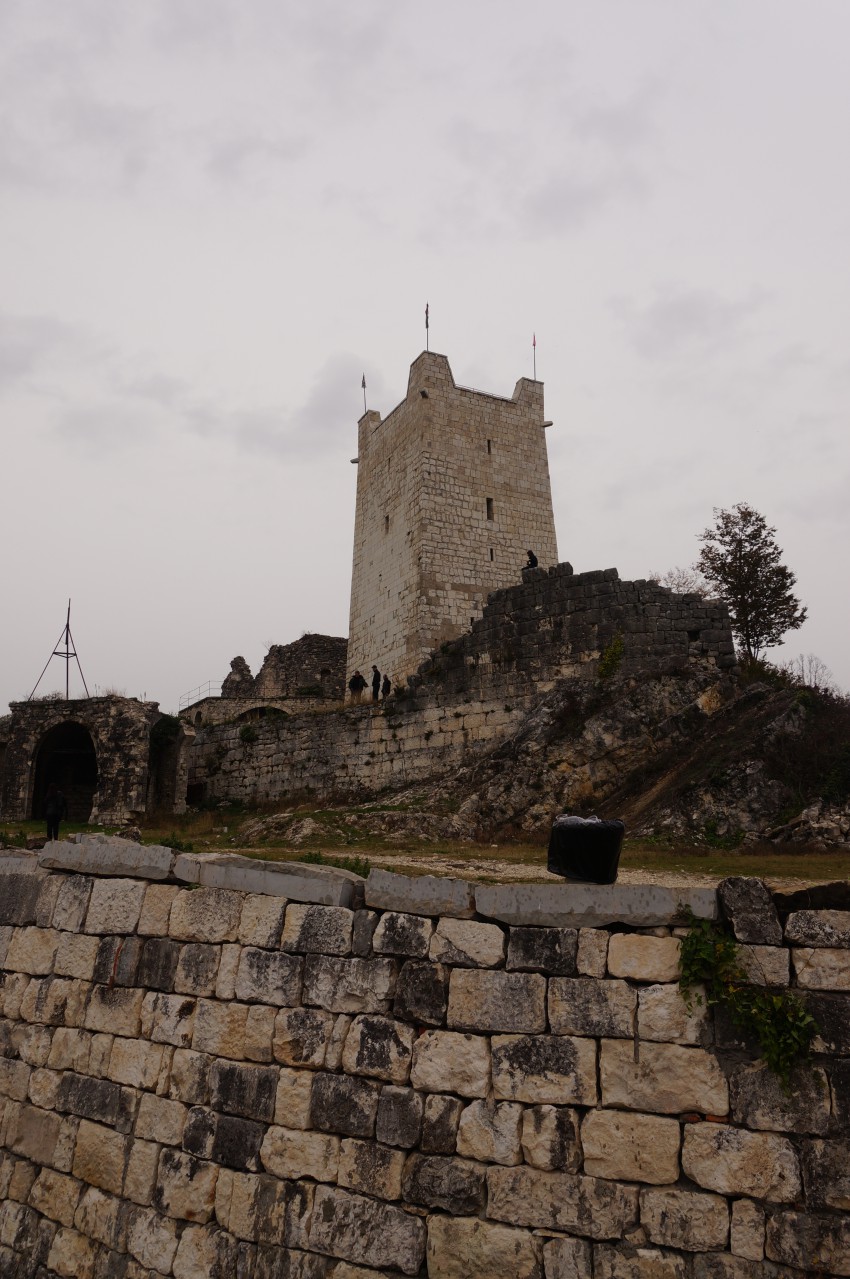 В конце 19 века новоафонские монахи построили, выложенную камнем дорогу в нагорную крепость. В 2008 году на вершине горы воссоздали огромную сторожевую башню, являющуюся панорамной смотровой площадкой. Во время нашего посещения башня к сожалению была закрыта.