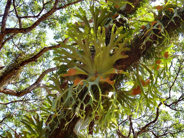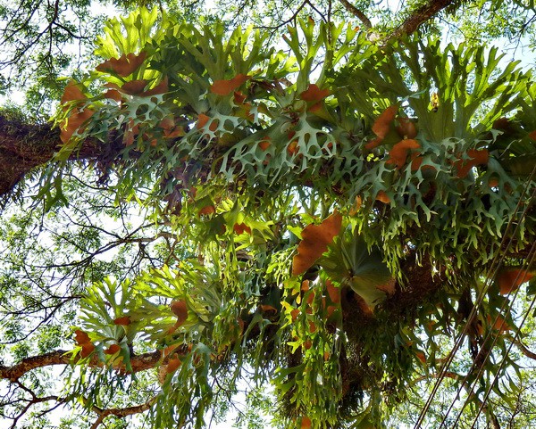 Зашли в лес, где все ветки и стволы деревьев покрыты папоротником, который называется Оленьи рога.