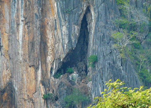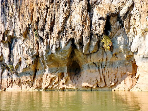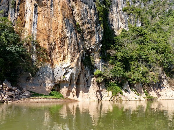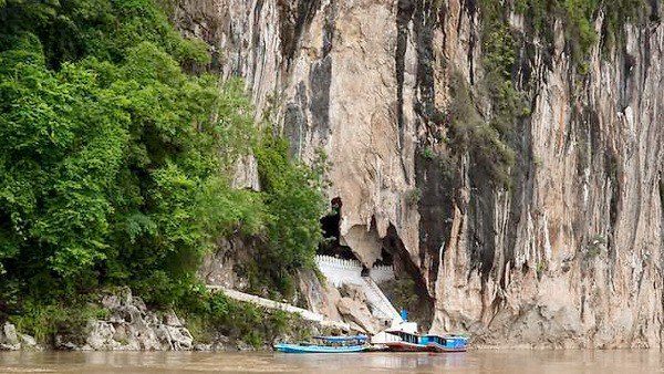 На обратном пути лодка переплыла Меконг и причалила у скалы с пещерой Пак-У.
