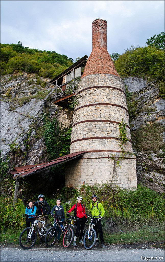 На подъезде к селу Мерхеули прям над рекой возвышается печь для обжига извести, в больших городах такого не увидишь: о)