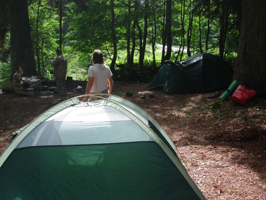 Ночью нас поливал дождь, почти не спали. Утро, лагерь.