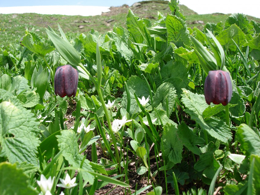 Собрали палатки и поехали на Авадхару, там пересекли вброд реку(мост смыло давно), оставили машины и далее пешком.Лашипсе в июне.(фото с июньской попытки попасть на Мзи — не получилось, было много снега!)
