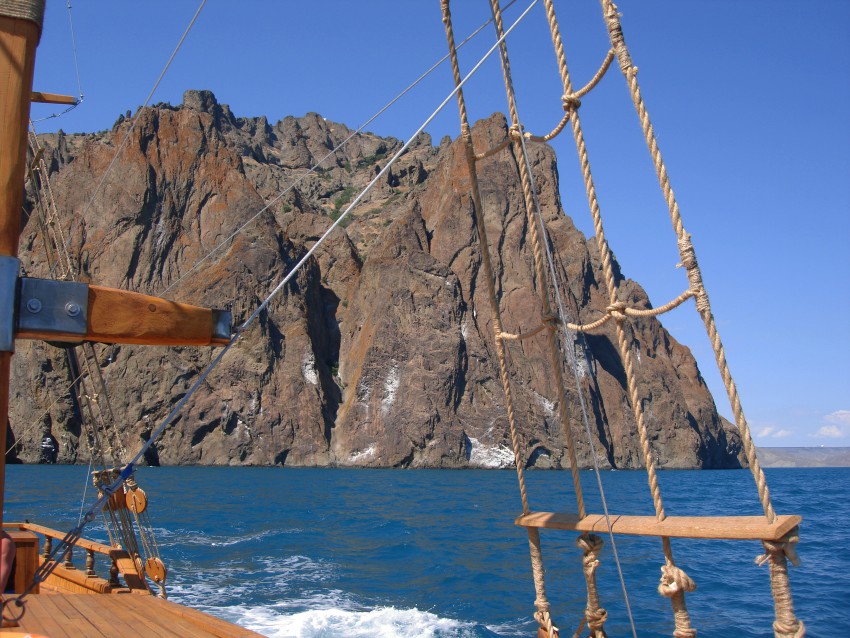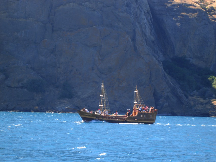 Те самые Золотые Ворота, «визитная карточка Крыма», здесь остановка, спустили трап и можно купаться в море. После купания возвращаемся обратно в Коктебель.