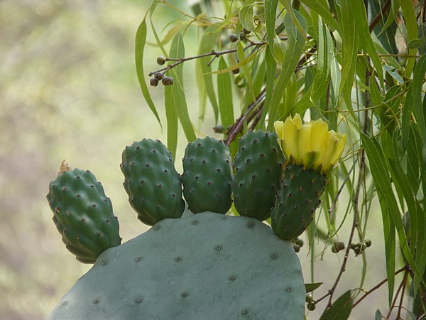 Рядом замечаем кактусы в ветках эвкалипта. Именно этого дерева здесь огромное количество.