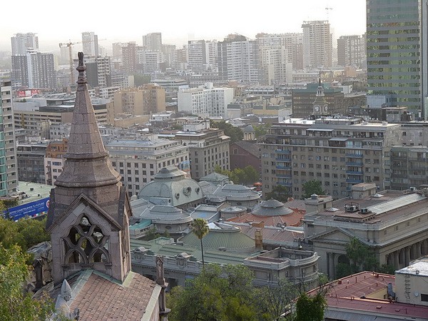Столица Сантьяго-де-Чили, или просто Сантьяго(6,5 млн.жителей) — один из великих городов мира. Примерно четверть всего населения страны живёт в этом городе. С утра мы решили прогуляться по его улицам. С юга и востока кипучий центр окружён зеленью жилых кварталов, и дома поднимаются по склонам гор. Два холма нарушают прямоугольную застройку города: это Серро-Сан-Кристобаль и Серро-Санта-Лусия. Туда мы и отправились.