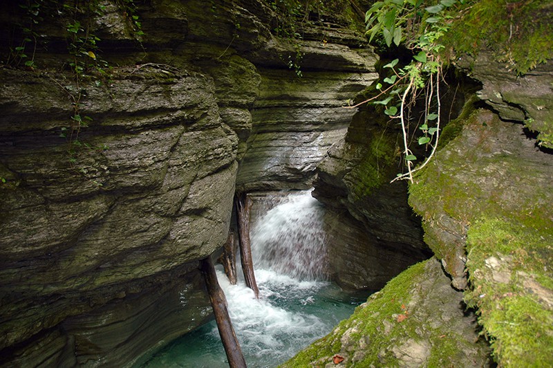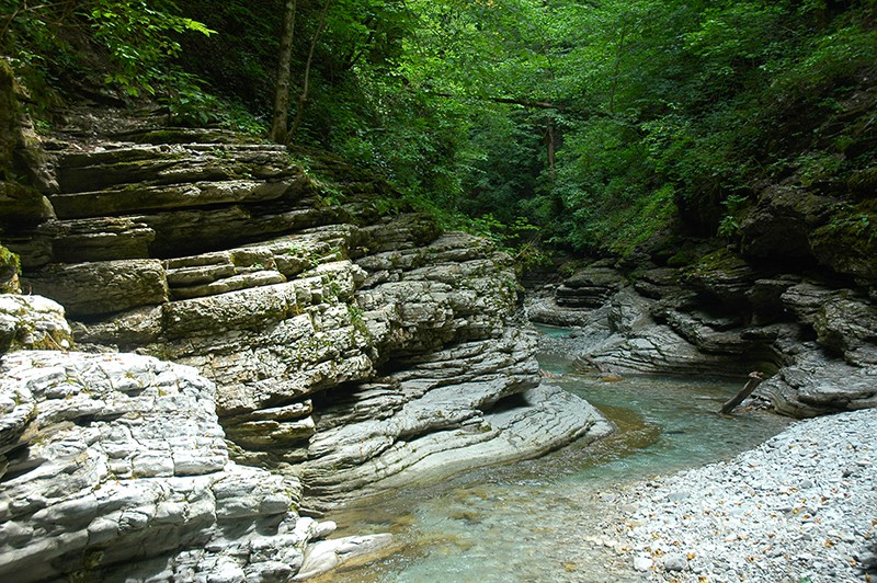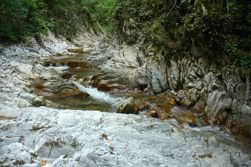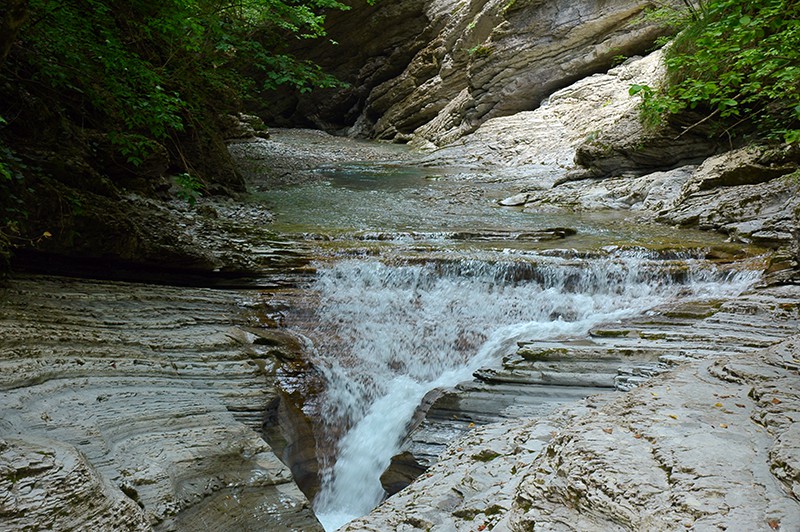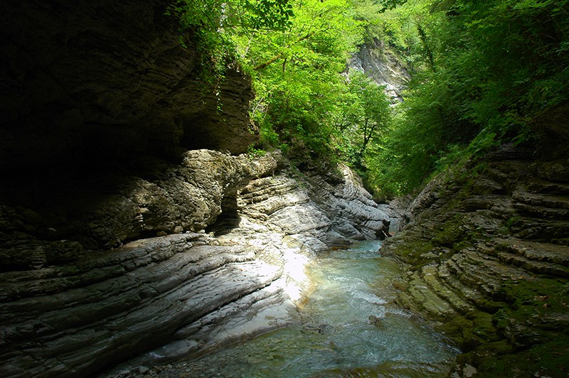 Скажу честно, я не ожидал, что относительно недалеко от Туапсе может находиться такое удивительное место. В туристических маршрутах оно называется «каньон Таштая». Говорят, в советские времена, отдохнуть на каньон Таштая из Горячего Ключа ехали толпы людей, переполняя электричку. Сейчас место кажется заброшенным, что, кстати, не так уж плохо). Не знаю насчет бани, но просто приехать и посмотреть такое чудо очень даже нужно, особенно, если вы будете в Туапсе. Длина каньона примерно километр, далее тоже красивые места, не представляющие труда для прогулки. В конце каньон соединяется с другим каньоном с водопадами. К сожалению, как всегда бывает, времени не хватило, чтобы заглянуть за водопады.
