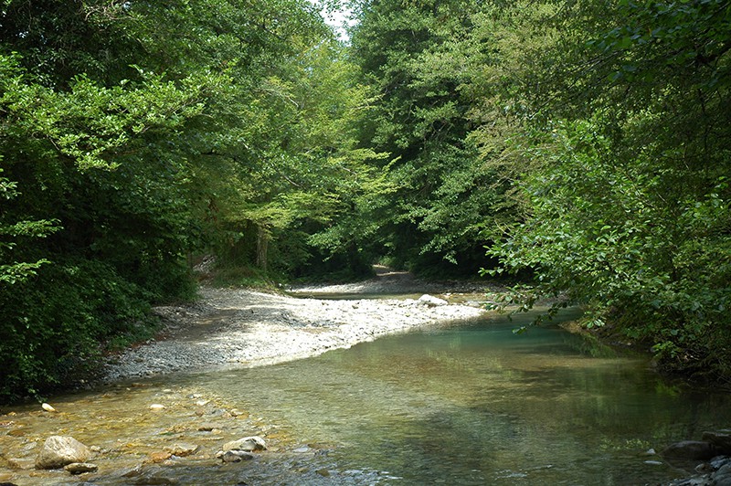 Кирпичное, Георгиевское, Кривенковское, Индюк и вот мы уже в населенном пункте с необычным названием — Челепси.(показать текст)Чилипси — река, правый приток р.Туапсе в Туапсинском районе Краснодарского края; берет начало на южных склонах Главного Водораздела, сливаясь с р.Пшенахо, образует р.Туапсе (басс. Черного моря). В верховьях р.Чилипси, у въезда в тоннель, находится железнодорожная станция Чилипси. Свое название река получила от перевала Чилепсин через хребет Калачи, где чылы – «шалаш», «балаган», «шатер» и псын – «родник», «колодец», — «родник у балагана» (адыг.). В левобережье р.Малая Лаба (территория Кавказского государственного биосферного заповедника) находится горная вершина Чилипси (3097 м); здесь же находится одноименный горный перевал Сворачиваем с бетонки и въезжаем в лес. Обычный лес, обычная горная грунтовка, несколько раз приходится переезжать горную речку.