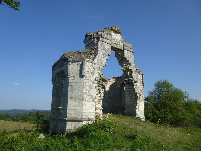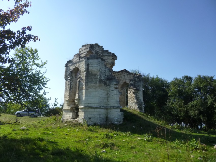 Выискивая дорогу из станицы Новосвободной в Баракаевскую свернули посмотреть полуразрушенную часовню. Она была установлена на плато Мамрюк-Огой в 1881 году в память о встрече императора Александра-2 со старейшинами горских племен. Его Величество был в этих местах в конце Кавказской войны, в 1861 году, проводил смотр войск и попытался предложить горским вождям прекратить бессмысленную войну, которую они уже фактически проиграли.