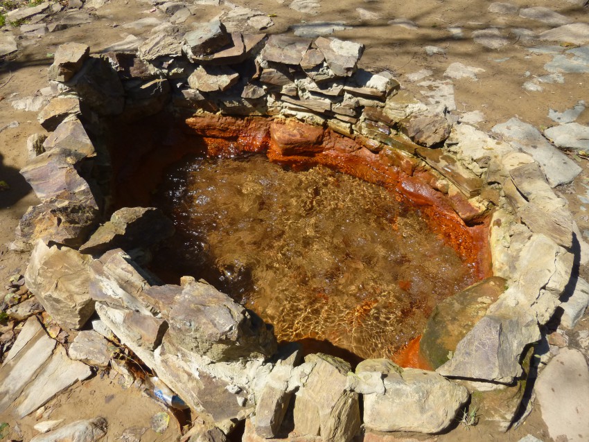 Возле входа на турбазу несколько человек торгует мёдом. Купили для пробы какой-то темный мёд с молочая, как утвержает местный торговец. Идем осматривать турбазу и пробовать нарзан с разных источников, которых здесь с десяток по берегам речки.