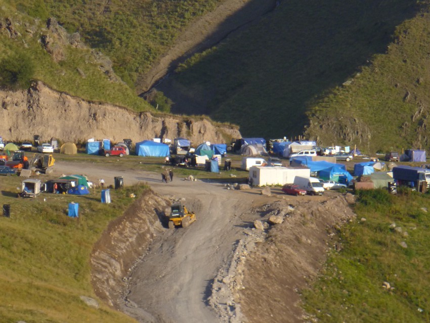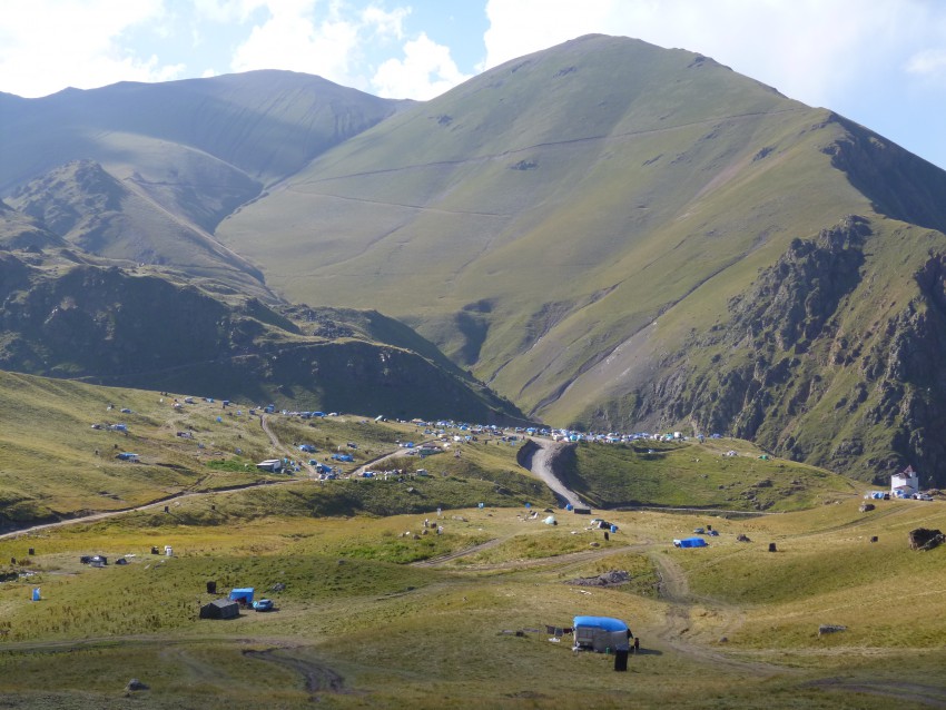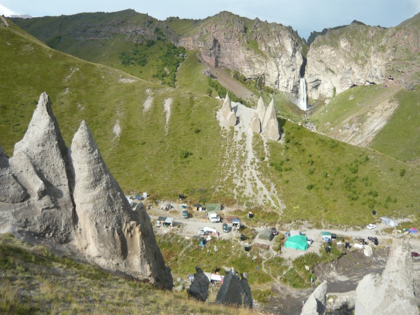Ну и, наконец, ущелье Джилы-Су. На ровном плато стоят сотни палаток людей, приехавших сюда на лечение — это мужчины, женщины, закутанные в платки по исламским обычаям, дети… Некоторые приезжают сюда на несколько недель и живут здесь принимая ванны, употребляя разную воду с источников