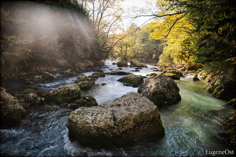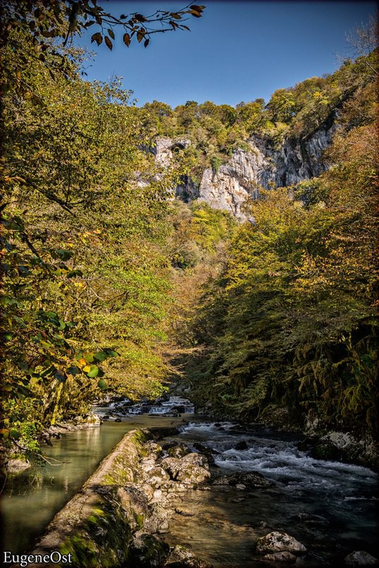 15. А вот и река Мчишта (Чёрная река) берущая своё начало из одноимённой пещеры-источника выходящей из под отвесных скал на которых располагается старинный Отхарский скальный монастырь, хотя первоначально он был построен как оборонительное сооружение для местных князей, которые прятались там при набегах пиратов.