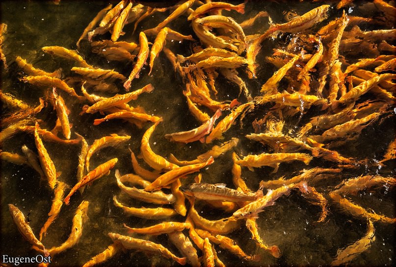 10. А эта форель плавает в канале с проточной водой прямо из речки