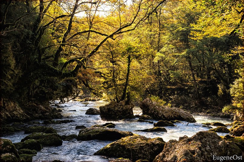 18. В ущелье нагромождение скал и всё утопает в зелени