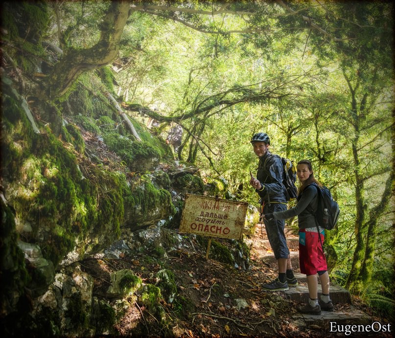 26. Альпинисты навесили верёвки между этажами, но если кто-то собирается рисковать, то лучше запастись своим снаряжением, так как несколько лет назад один парень понадеялся на верёвку и разбился на смерть. На скале есть памятная табличка, впрочем не одна, вторая в память о погибшем по неосторожности в сифоне спелеологе.