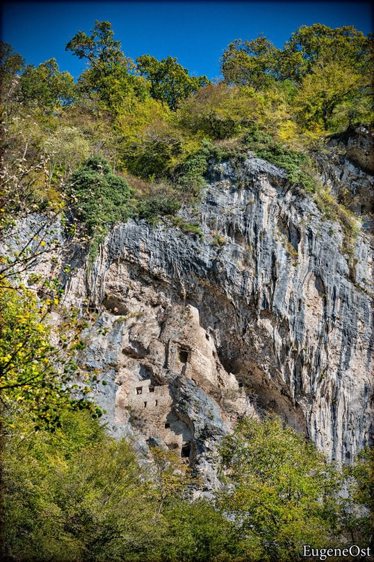 23. А над нами возвышаются живописные отвесные скалы со скальным монастырём в левой их части