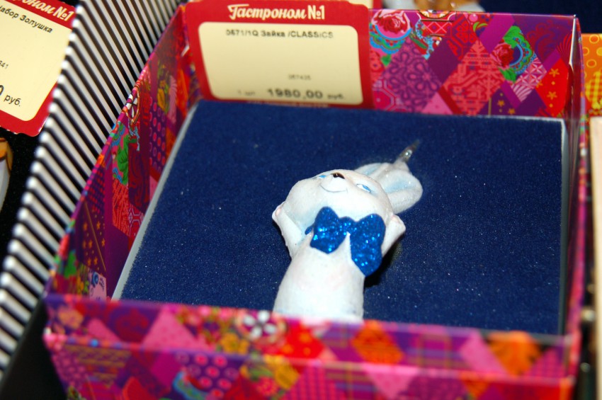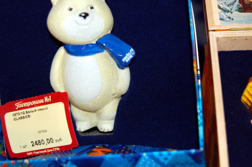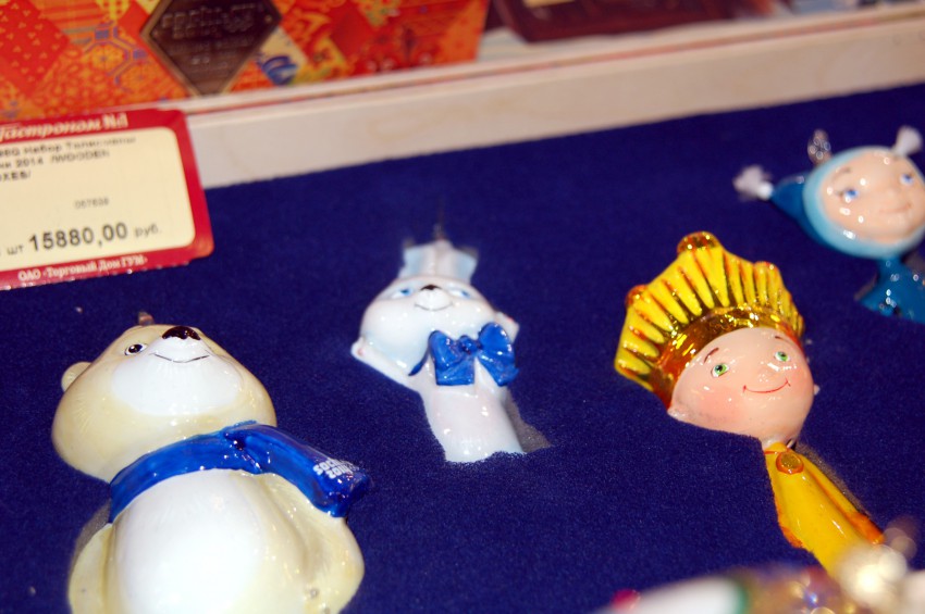 Итак по порядку. Олимпийские талисманы, тем более исполненные как елочные украшения, плюс в ограниченном количестве, не могут дешево стоить, тем более в ГУМе.