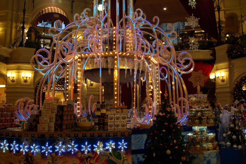 В ГУМе сейчас действительно красиво, очень хорошо оформлено, по настоящему празднично. Но цены!!! Слова сложно подобрать, стоимость рассчитана на гостей и очень состоятельных людей. Но в гастрономе можно купить очень вкусную еду, вино и т.д по московским, а не космическим ценам.