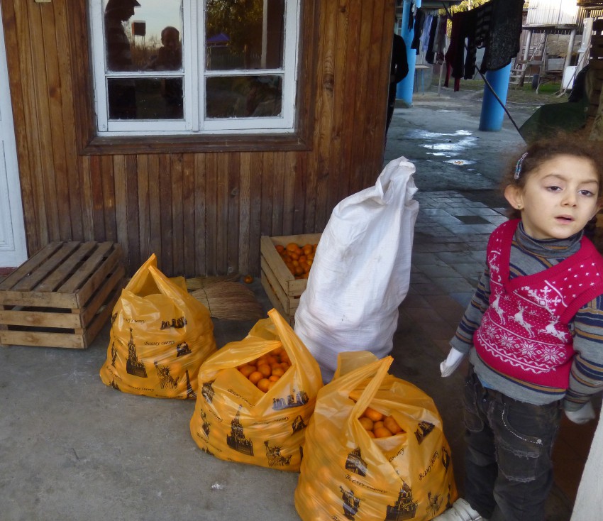Первое что надо было успеть сделать до наступления Нового года — купить мандарин и на праздничный стол, и домой. Что мы и сделали в селе Уарча, где постоянно мандарины покупаем.
