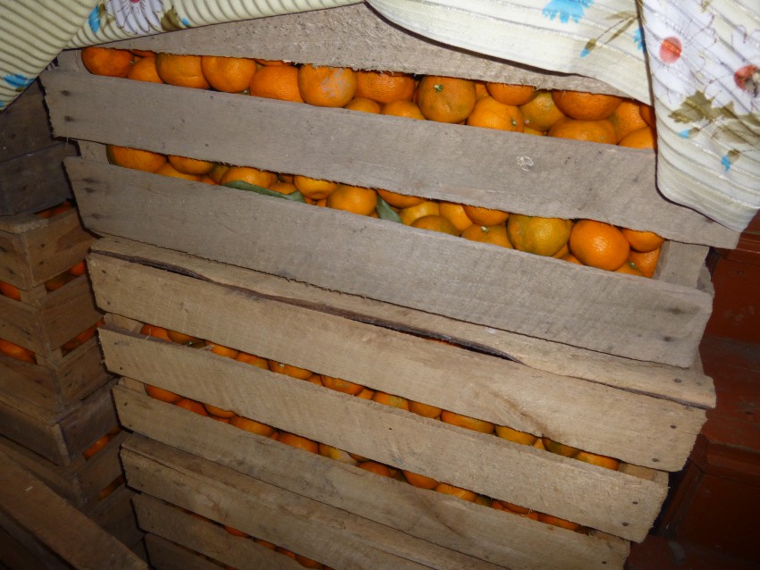 А собранные мандарины лежат в ящиках и ждут своих покупателей