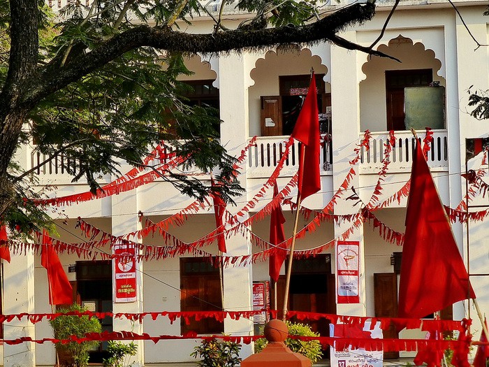 В Керале такие флаги с серпом и молотом попадаются довольно часто. Дело в том, что в этом штате Индии ещё в 1957 году впервые было демократическим путём избрано коммунистическое правительство. Уникальное сочетание демократических и социальных принципов привело к впечатляющим результатам. Здравоохранение образование здесь находятся на самом высоком уровне в стране. Уровень грамотности – 91 %. Самый низкий уровень смертности среди детей, а продолжительность жизни составляет 73 года, что на 10 лет больше, чем в остальных штатах. Кстати, это намного больше, например, продолжительности жизни мужчин в России сейчас!