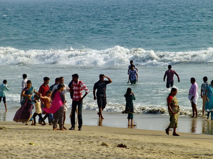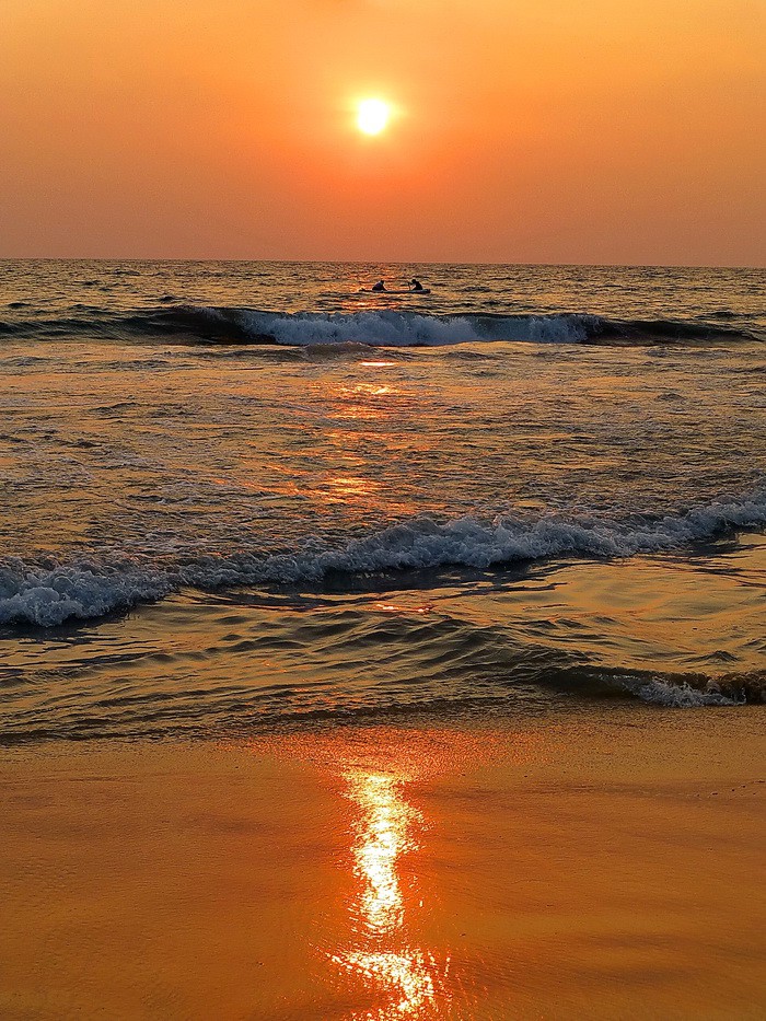 Вода чудесная, приятная и как будто шёлковая (+30 градусов!). Такое ощущение, что попадаешь в объятие любимой женщины! Жарко, одежда быстро высыхает. Надо заметить, что сами индусы не купаются, да вообще глубоко не заходят в воду, так как не умеют плавать!