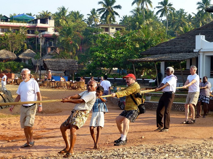 На следующее утро ранний подъём и прогулка вдоль берега моря среди рощ кокосовых пальм, рыбацких лодок и хижин.