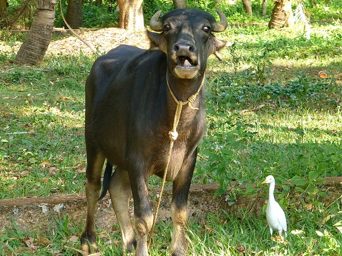 Рядом пасутся буйволы.