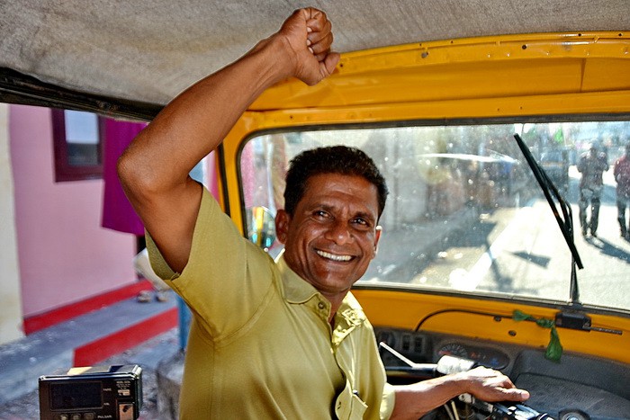 Случайно познакомились с коммунистом, водителем моторикши, который подвозил нас на улицах города.