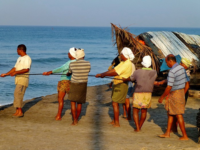 Наблюдаем, как рыбаки вытаскивают сети.