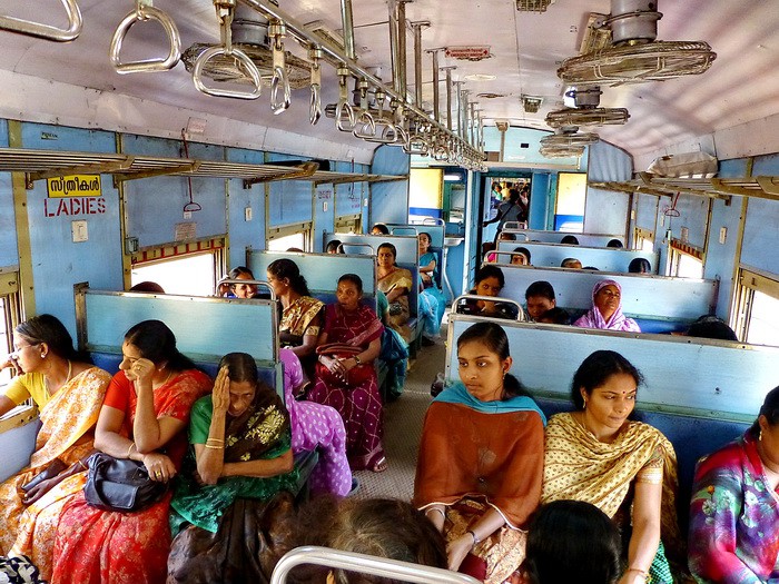 До Варкалы ехали в sleeping class. Вагон похож на наш плацкарт, битком набитый, едва нашли место, где присесть.