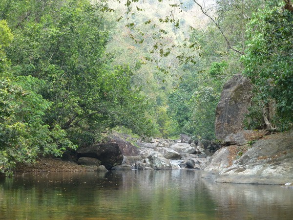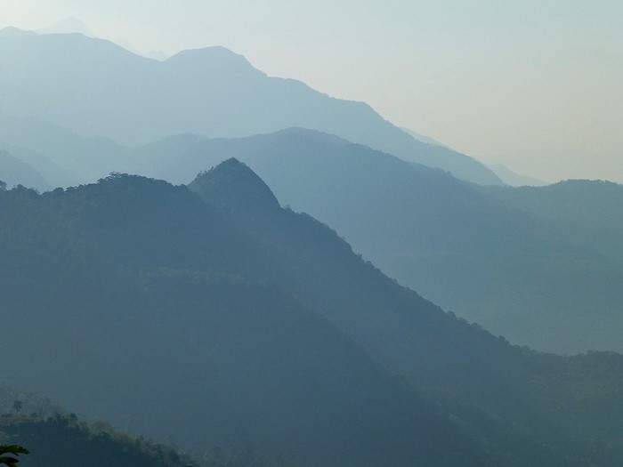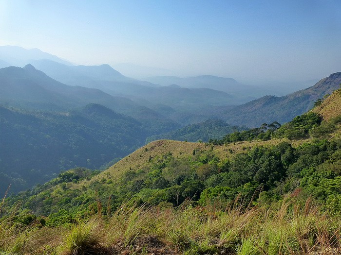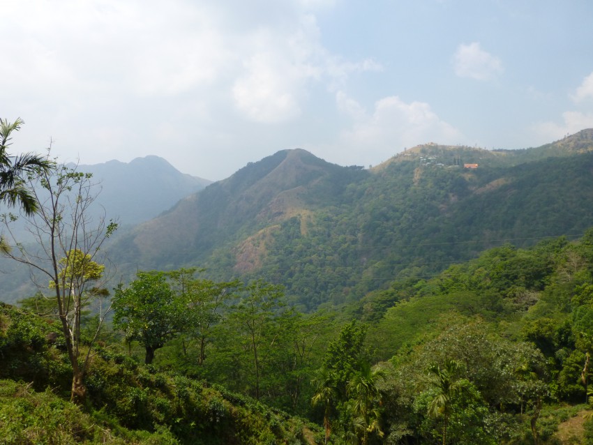 Рано утром – ещё папайя и индийские гороховые котлетки и выезжаем в горный посёлок Понмуди, расположенный в 56 км от Тривандрума. Сначала было очень темно и прохладно. Из окна автобуса дул сильный ветер и пришлось закрывать окна. Пожалел, что не взял тёплую рубашку. Постепенно рассвело. Мы проезжали мимо маленьких деревушек. Люди понемногу просыпались. Начался горный серпантин. Справа и слева склоны поросли лесом.